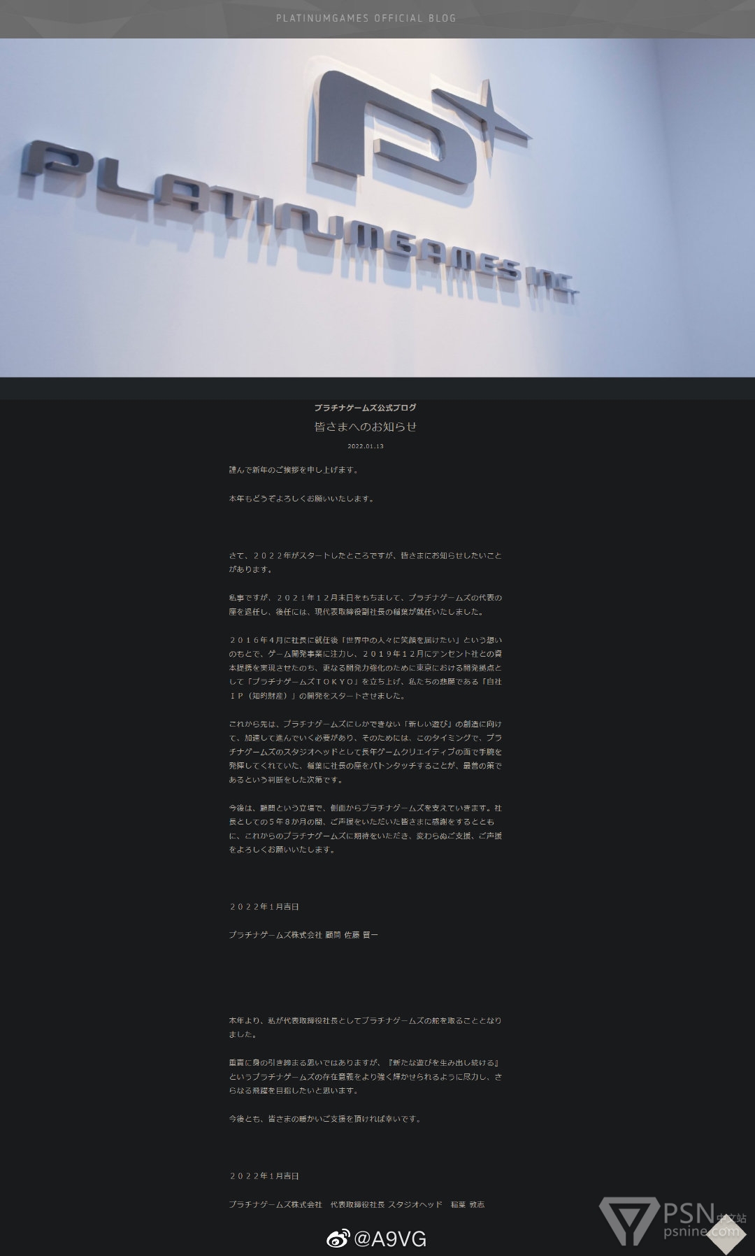 白金游戏今日发表人事公告,自2016年4月起担任公司代表取缔役社长的佐藤贤一已于2021年12月底离任,副社长稻叶敦志将接替他的位置。理由是未来公司需要加快步伐,创造只有白金才能打造的新游戏,为此作为白金工作室负责人、一直以来在游戏创意方面的表现都很出色的稻叶更能胜任社长一职。今后佐藤将以白金游戏顾问的立场来帮助公司进一步发展。