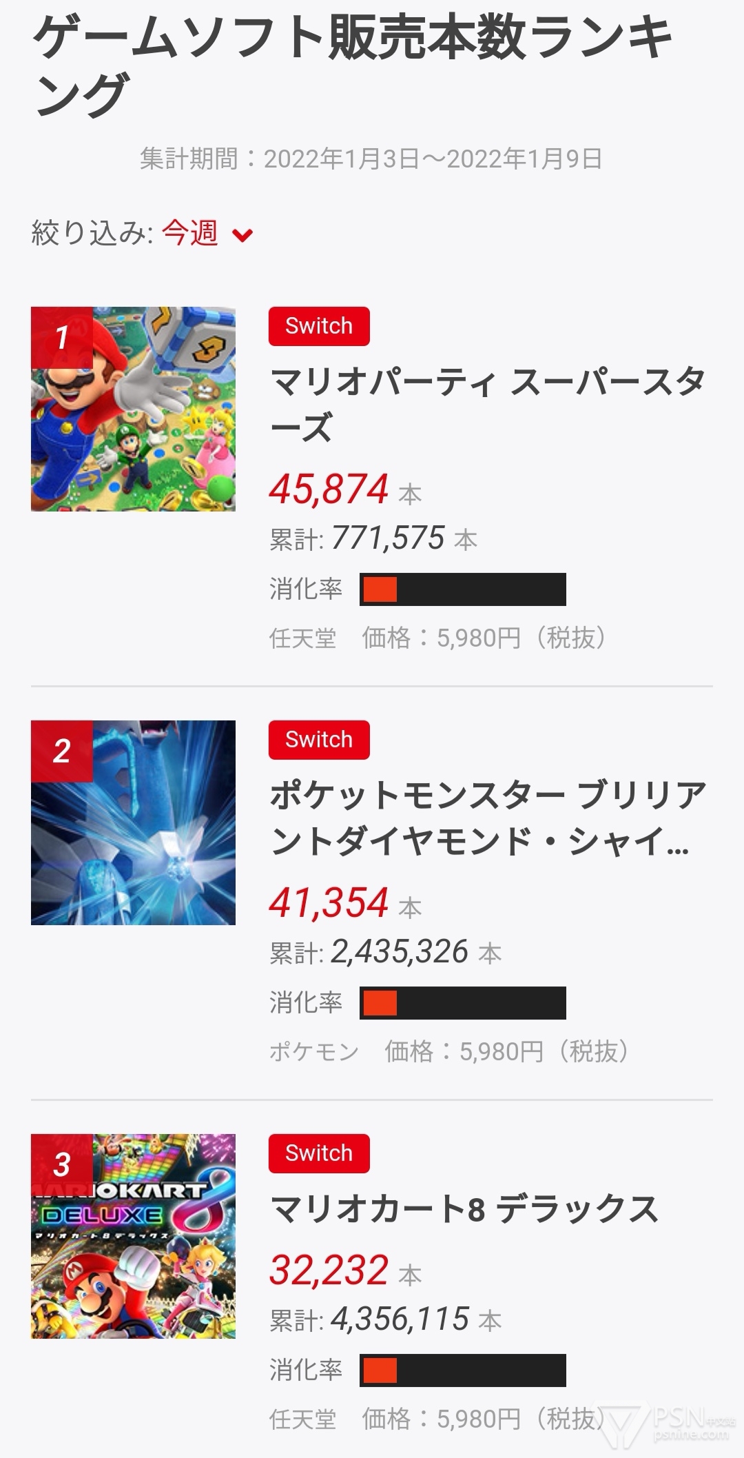 1. NS 马力欧派对 超级巨星:45874本(累計77万1575本)