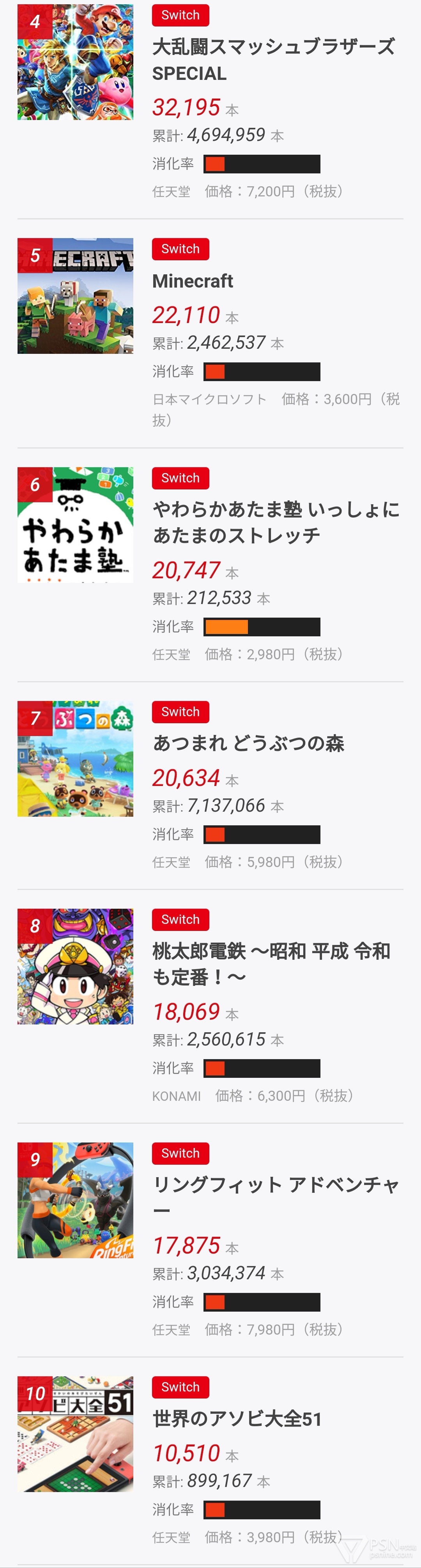 5. NS 我的世界:22110本(累計246万2537本)