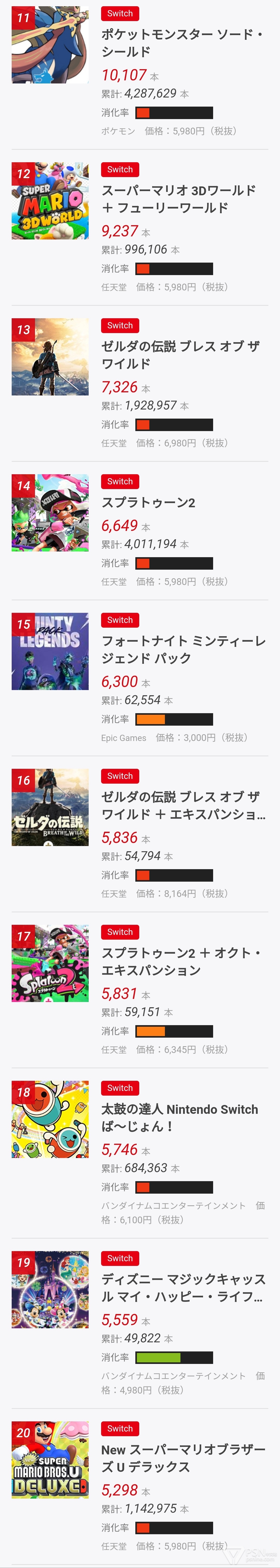 10. NS 世界游戏大全 51:10510本(累計89万9167本)