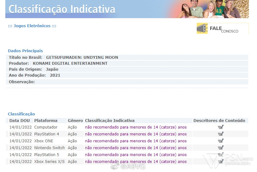 巴西游戏评级网站透露了《月风魔传:不死月》将登陆PS5、PS4、XSX|S、Xbox One版的消息,这款游戏先前曾于2021年5月13日以抢先体验版的形式登陆Steam,正式版预计在2022年内登陆Switch与PC。PS与Xbox版目前官方尚未正式公开,更多消息请期待来自Konami官方的消息。