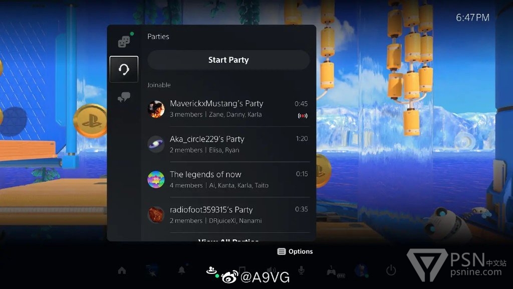 可在“创作”菜单中启动“分享屏幕”功能,并可以把直播推到一个公开派对(图9)