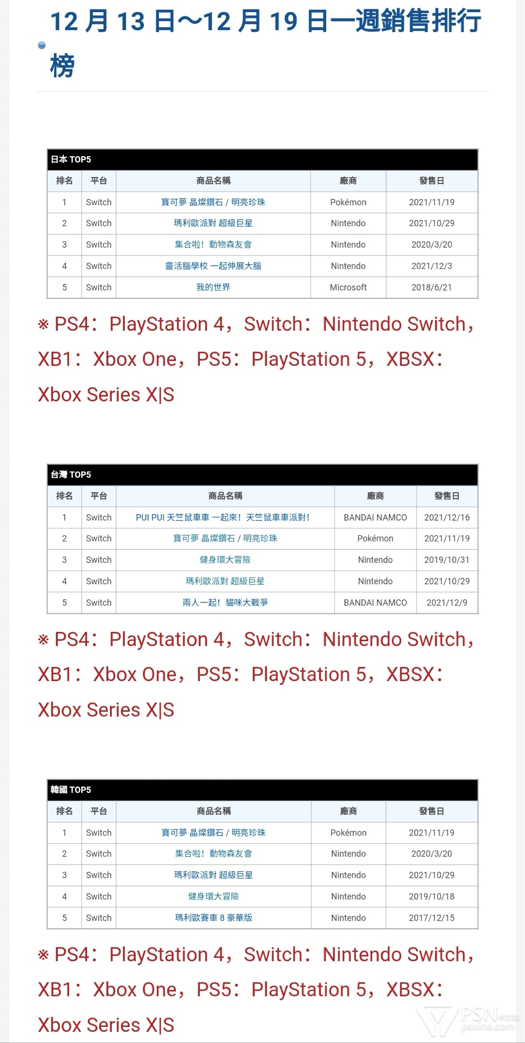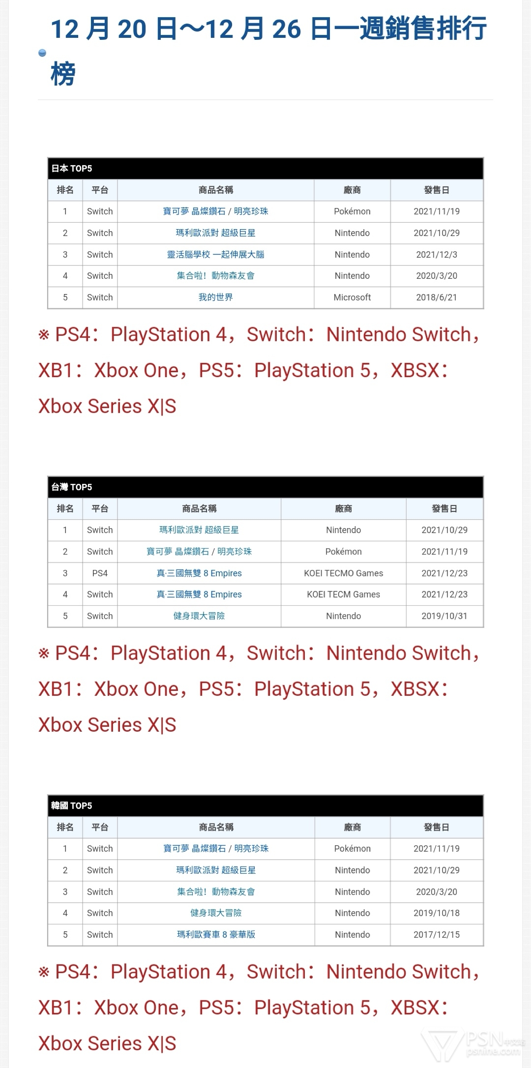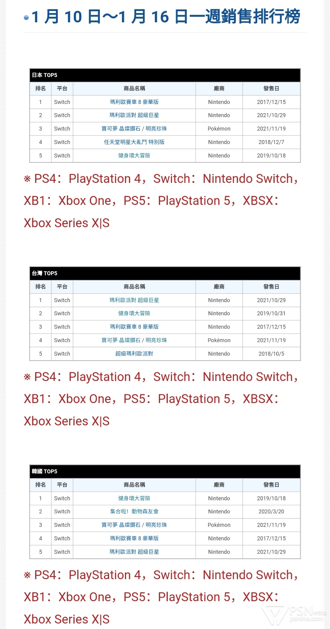 此间有《真三国无双8帝国》《宝可梦传说阿尔宙斯》《GTA三部曲》等新游戏入榜,大部分时间由老游戏霸榜,PS版游戏仅一次进入台湾榜。