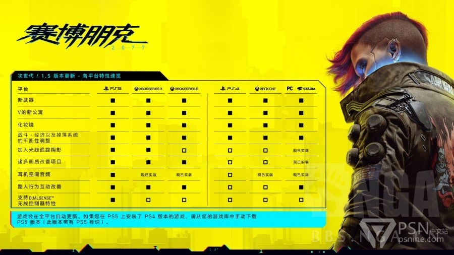 为美洲地区添加了西班牙语配音支持(PlayStation 包装码:CUSA-16596 和 CUSA-16597)。由于技术限制的原因,该功能仅在次世代主机上推出。更多关于语言支持的详细内容请参见:Xbox/PlayStation 。