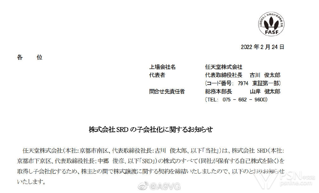 任天堂今日发公告宣布将收购日本游戏开发公司「株式会社SRD」,SRD自1983年起一直在为任天堂开发游戏,两公司间的合作关系已持续近40年之久,这次将SRD纳为子公司是为了强化任天堂的经营基盘、确保未来软件开发资源的安定性并提升开发效率。