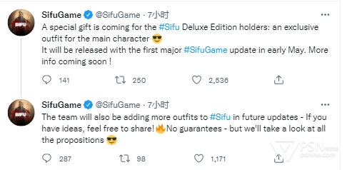 另外官推今日宣布,先前购买豪华版的用户能够免费获得一件主角的独有外观服装,这将伴随游戏在五月初上线的首个大型更新一起推出,更多详情将于近期公开。