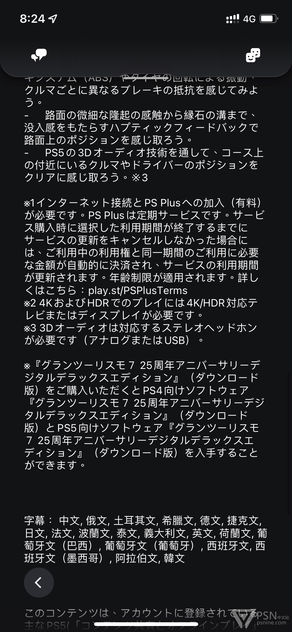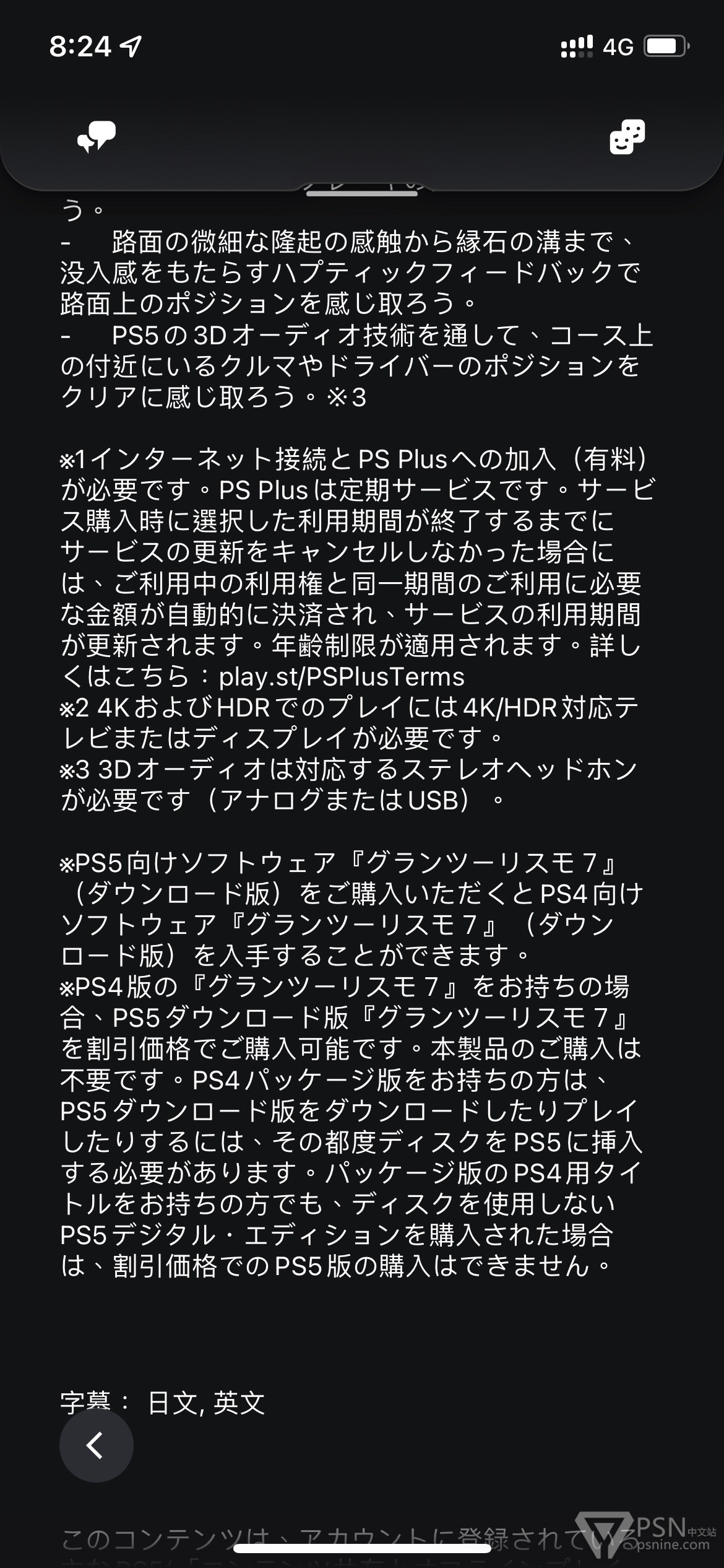 @lgrs4341 https://www.playstation.com/zh-hans-hk/support/games/gran-turismo-7-announcement-faq/ 港服也有,如果备注没写理应算是本地版本。客服都没拿全球这方面当理由回我。