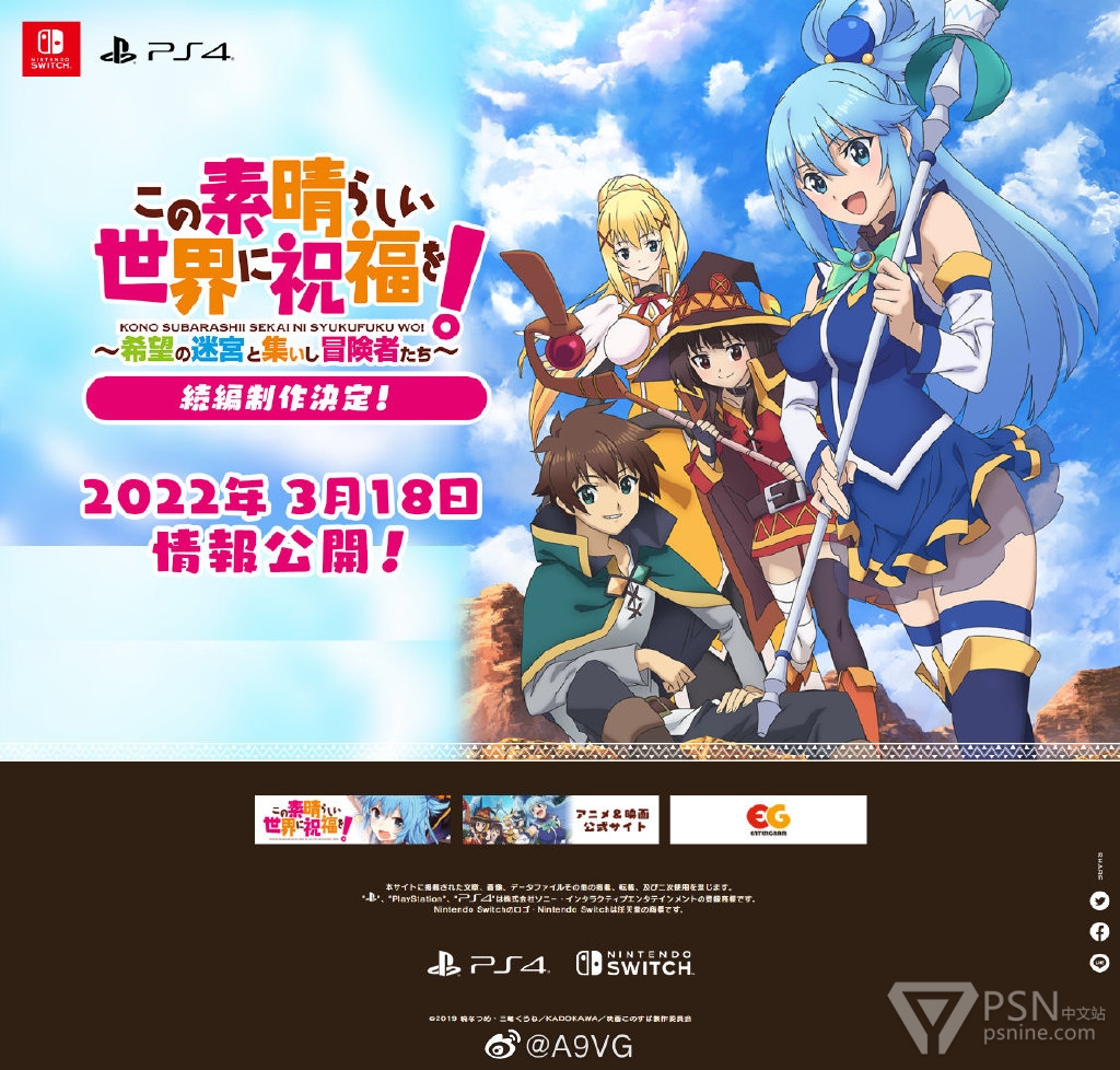 Entergram宣布,《为美好的世界献上祝福 希望的迷宫与集结的冒险者们》续作制作决定,登陆PS4/Switch平台,2022年3月18日公开详细情报。
