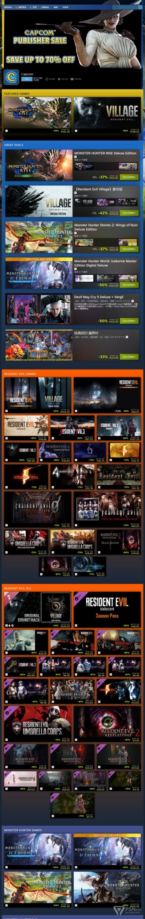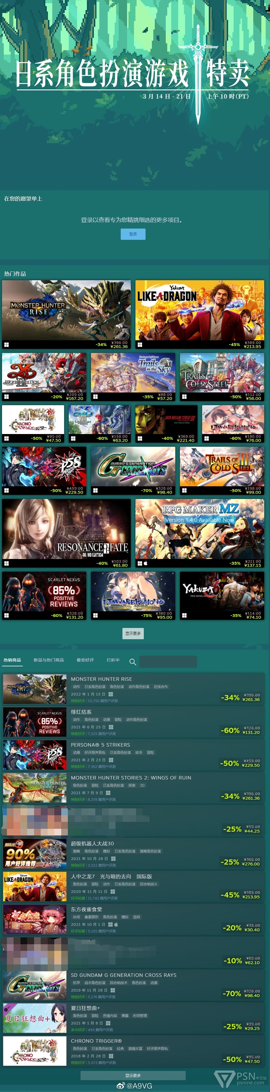 Steam开启日系角色扮演游戏特卖和Capcom发行商特卖,《怪物猎人》《鬼泣》《如龙》《伊苏》《轨迹》等系列,以及大量经典作品均有折扣。