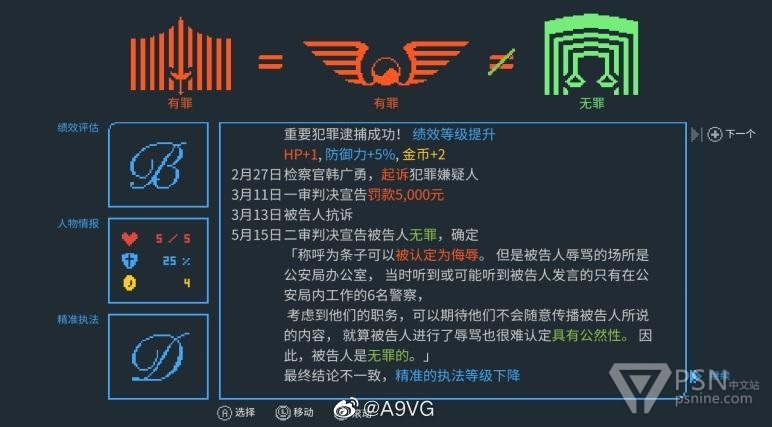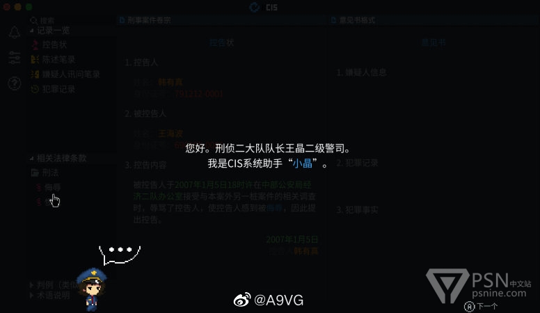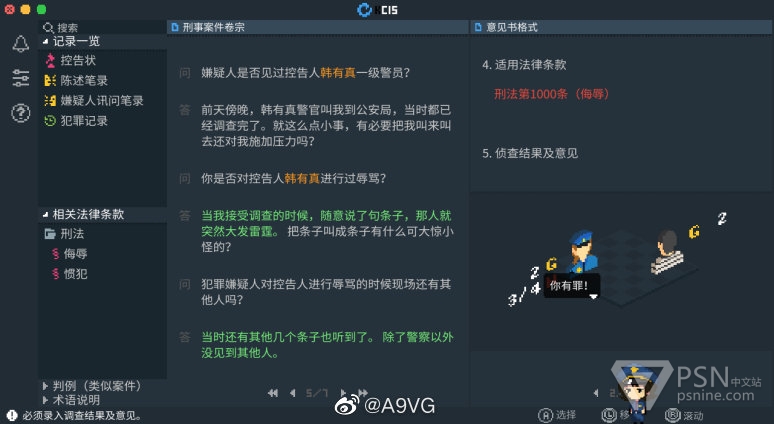 玩家起诉嫌疑人的次数越多,警察内部的“绩效评估”就越多。根据适用的法律,警察内部会给出分数,将影响所属的警察局和王晶的评估。