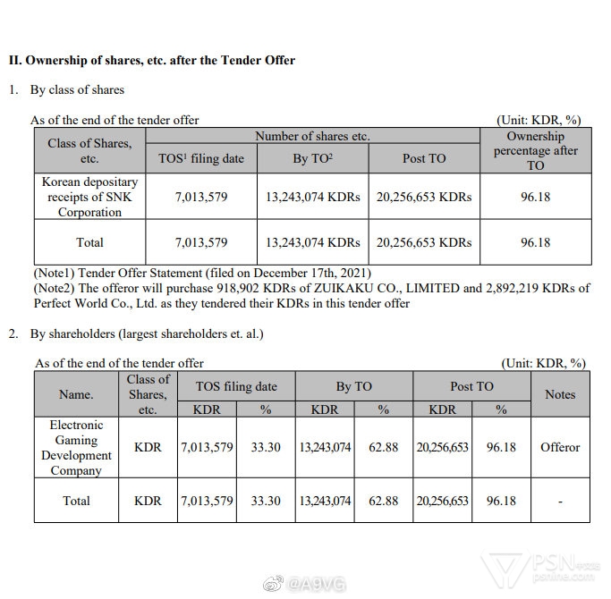 【沙特新收购】早在2020年11月,沙特王储穆罕默德·本·萨勒曼拥有的游戏公司EGDC收购了SNK 33%的股份,不过根据SNK官网的一则PDF文章显示,EGDC现已持有SNK 96.18%的股份,这意味着SNK已归沙特王储。