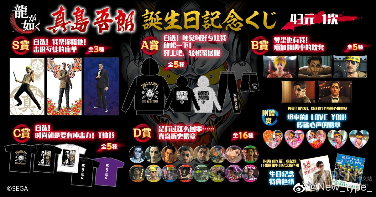 《如龙》真岛吾朗 生日纪念抽赏上架啦!冲鸭