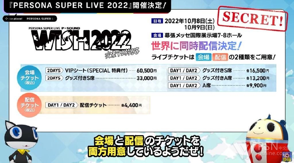除了在现场观赏以外,日本国外的玩家也可通过购买视听门票来收看线上直播,门票售价各4400日元。