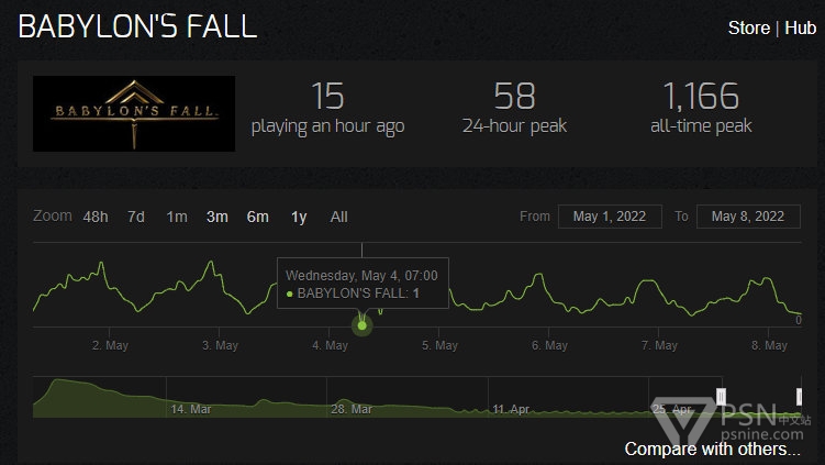 据数据网站SteamCharts统计,在5月4日这一天的清晨,只有1名玩家仍在《巴比伦陨落》的世界里奋战。这款游戏在发售两个月后已迅速淡出舞台,过去30天内,其平均在线人数仅为64人,作为对比,同样为SE旗下《漫威复仇者联盟》都有276人,《Outriders》则有860人。