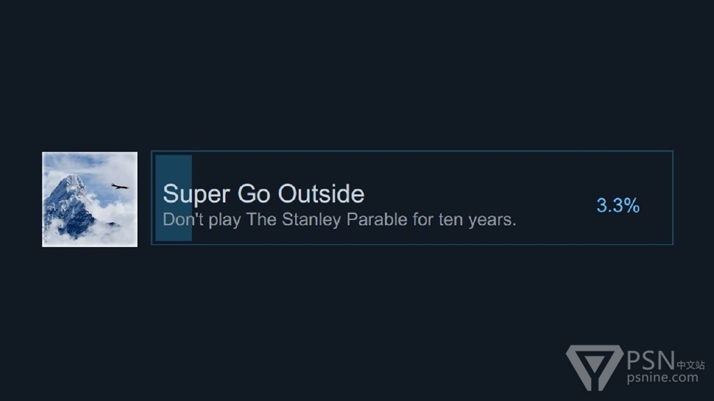 【发现有人作弊完成超难成就,《史丹利的寓言》作者很生气】在著名独立游戏《史丹利的寓言》中有一个著名的超难达成成就:“Go Outside”,该成就需要玩家五年不玩该游戏方可达成该成就。而在4月28日发售的《史丹利的寓言 超级豪华版》中,该成就升级成了需要十年不玩这个游戏的“Super Go Outside”。