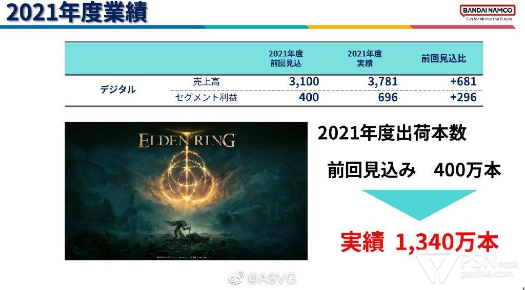【老头环出货量已破1340万份】万代南梦宫今日公开21-22财年年度财报,该财年销售额8892.7亿日元,同比增长20.0%,营业利润1254.96亿日元,同比增长48.2%。