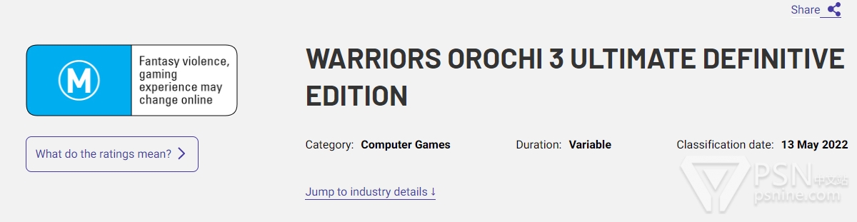《无双大蛇2:终极最终版》已在澳大利亚完成评级,评级为M。《无双大蛇2》于2011年11月22日登陆PS3/Xbox 360,2012年7月19日登陆PSP,2012年11月18日登陆Wii U。《无双大蛇2:终极版》于2013年9月26日登陆PS3/PSV,2014年6月26日登陆PS4,2014年9月2日登陆Xbox One,2017年9月9日登陆Switch。