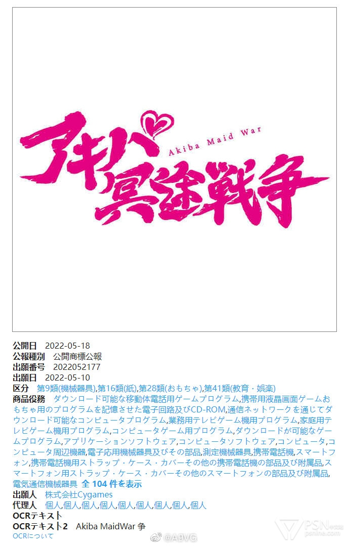 【Cygames注册商标“秋叶原冥途战争”】根据商标Watch的消息显示Cygames于本月注册了一个全新的商标“秋叶原冥途战争”(Akiba Maid War),其中“冥途”在日语中是“女仆”的谐音双关语,从英文名来看也就是秋叶原妹抖战争的意思。目前暂时没有关于本作更多的消息,不过之前《闪乱神乐》的爆乳制作人高木谦一郎在前两年离职加入了Cygames并着手制作新游戏Project GAMM,或许正式名称就是《秋叶原冥途战争》。