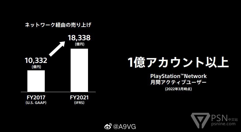 ・2021财年的PSN营业额累计超过1兆8000亿日元,有超过1亿个账号正在使用PSN服务。相比2017财年的时候营业额增长了大约8000亿日元;