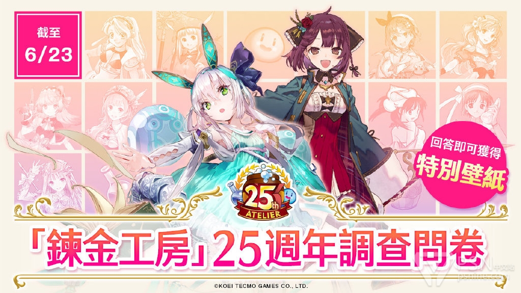 为了今后向广大玩家奉上更加优质的作品,特此实施【“炼金工房”25周年调查问卷】。各位提出的宝贵意见将用于改进今后本系列的作品。所有回答问卷的玩家均可获得“炼金工房”25周年特别壁纸!