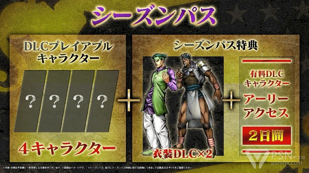 · 季票包括四位新增可操作角色、季票特典(含岸边露伴、阿布德尔DLC服装和DLC角色提前两日解锁权限)
