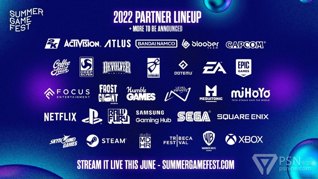 “夏日游戏节”主办方宣布本次将有超过30家游戏厂商作为合作伙伴参加今年的活动,包含PlayStation、Xbox、Steam、Epic、SE、Capcom、世嘉、Atlus、万代南梦宫、动视、EA、2K、华纳等等。
