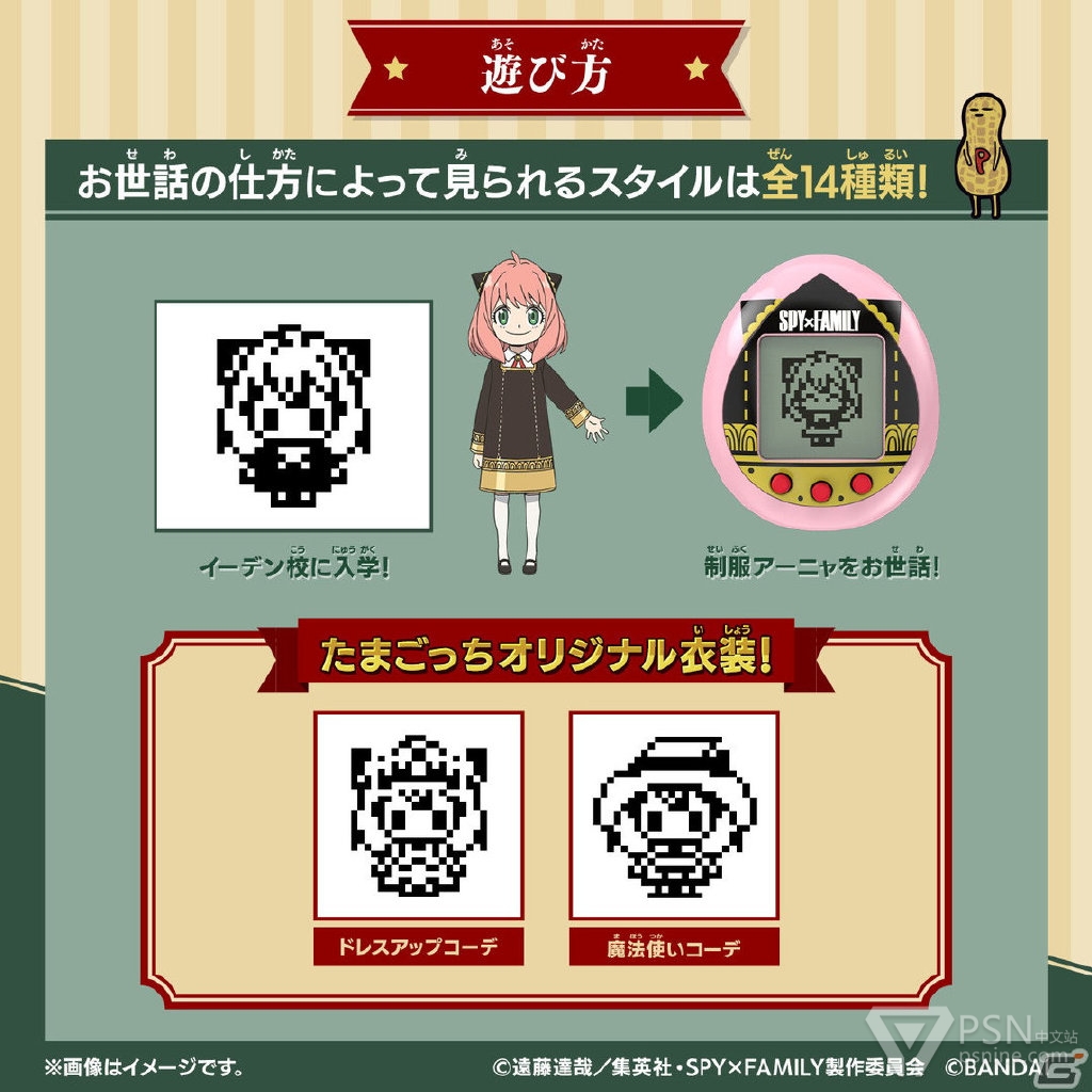 万代宣布与TV动画《间谍过家家》联动推出阿尼亚的拓麻歌子,预定于12月17日发售,分2款,售价各税后2530日元。