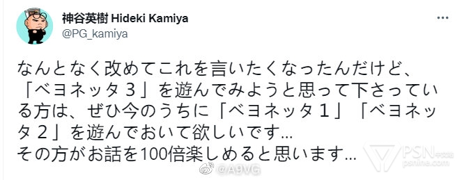 白金工作室的神谷英树今日再次在推上建议玩家在体验《猎天使魔女3》之前,可以先去玩玩前两作,这样会让玩家更加享受3代的剧情。
