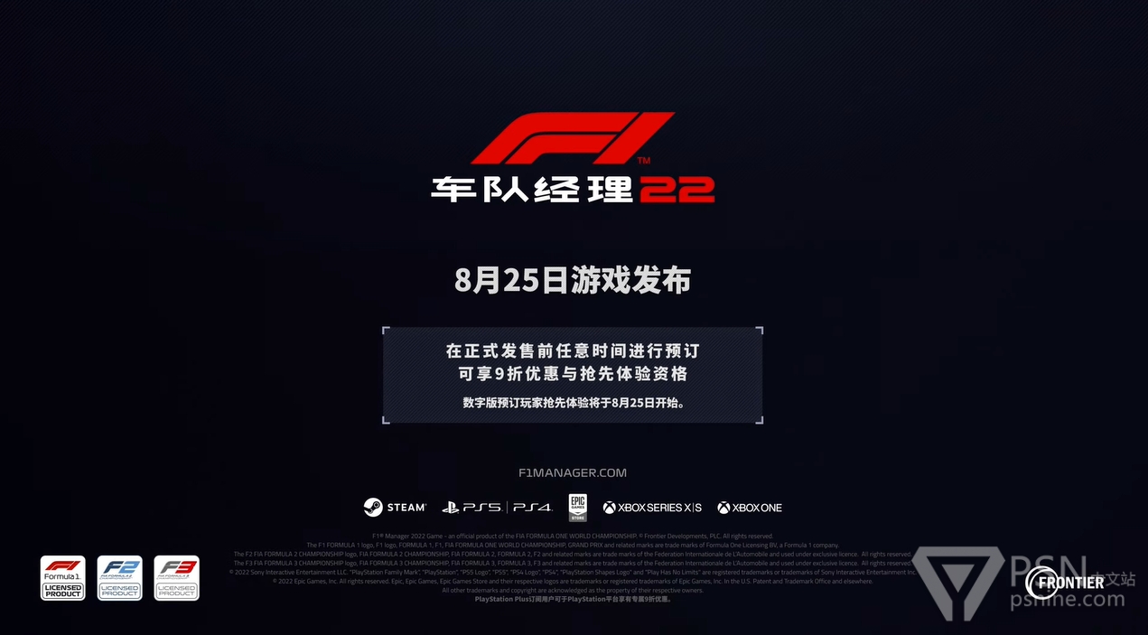 《F1车队经理2022》将于2022年8月30日正式发售,登陆PS4/PS5。预购玩家可提前5天游玩游戏(8月25日),预购可享9折优惠。游戏支持简体中文字幕及音频。