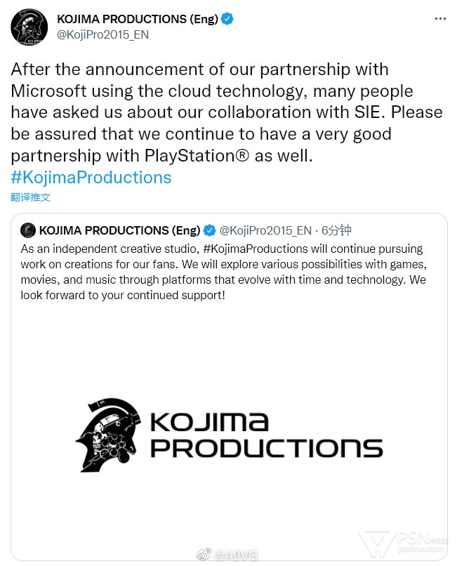另外,在我们宣布与微软合作的云技术项目后,很多人前来询问KJP与SIE的合作情况。请放心,我们与PlayStation同样会继续保持非常好的合作关系。