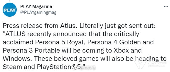 Atlus表示《女神异闻录3 携带版》《女神异闻录4 黄金版》《女神异闻录5 皇家版》也将登陆PS5和Steam