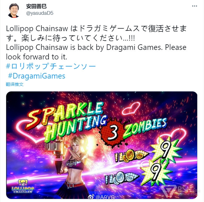 Dragami Games社长安田善巳宣布公司将重新推出《电锯甜心》,具体是指移植到更多平台还是推出新作还尚不确认。先前角川游戏已将多个游戏版权转交给Dragami Games,后者为角川拆分出来的独立公司。