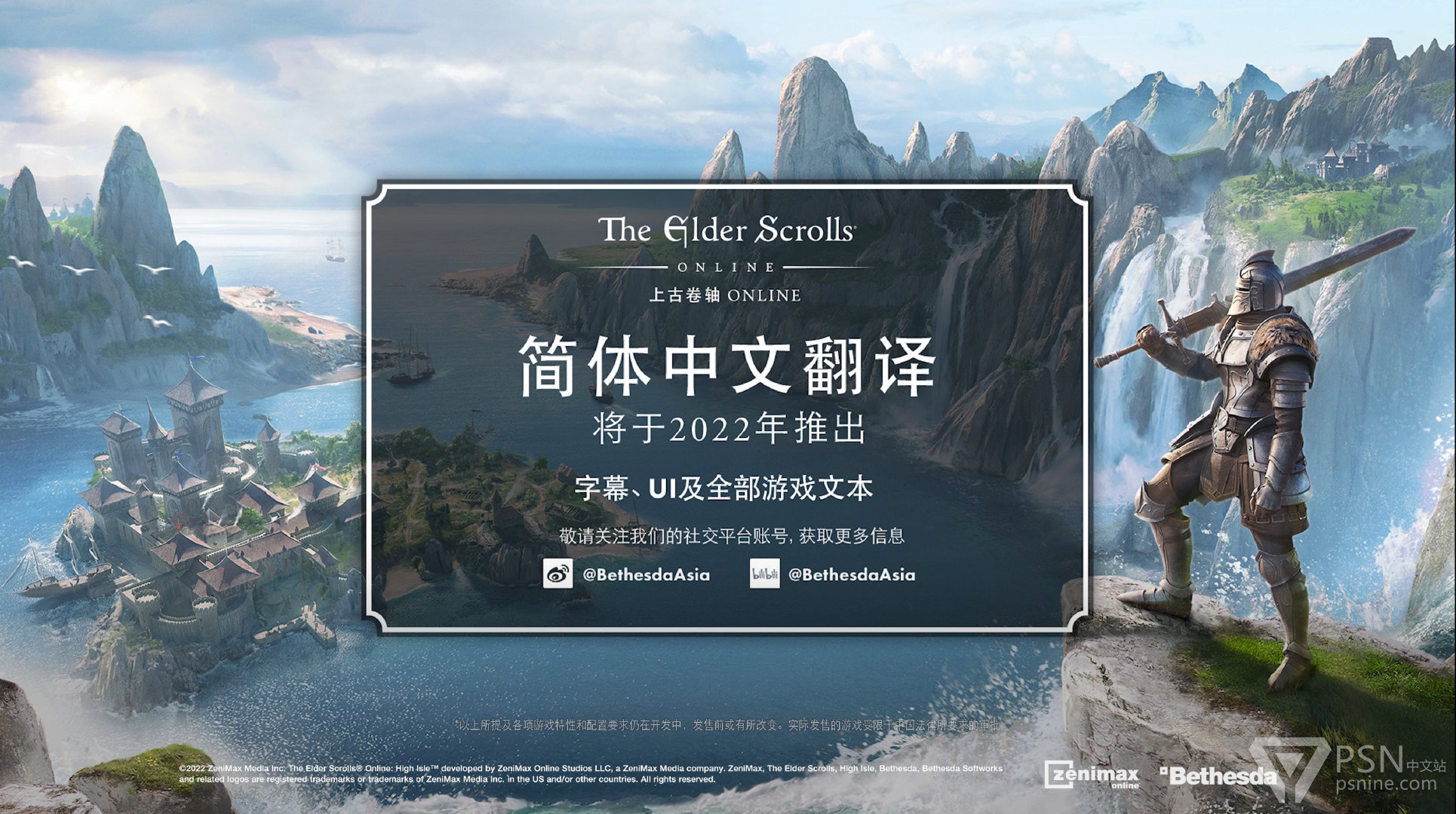 由ZeniMax Online Studios研发,Bethesda发行的在线RPG游戏《上古卷轴Online》,中文将成为官方支持语言之一。预计在2022年稍晚时间,整个游戏和后续版本中的所有文本将完成中文本地化。