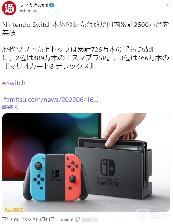 FAMI通:Switch日本国内推测累计销量突破2500万台