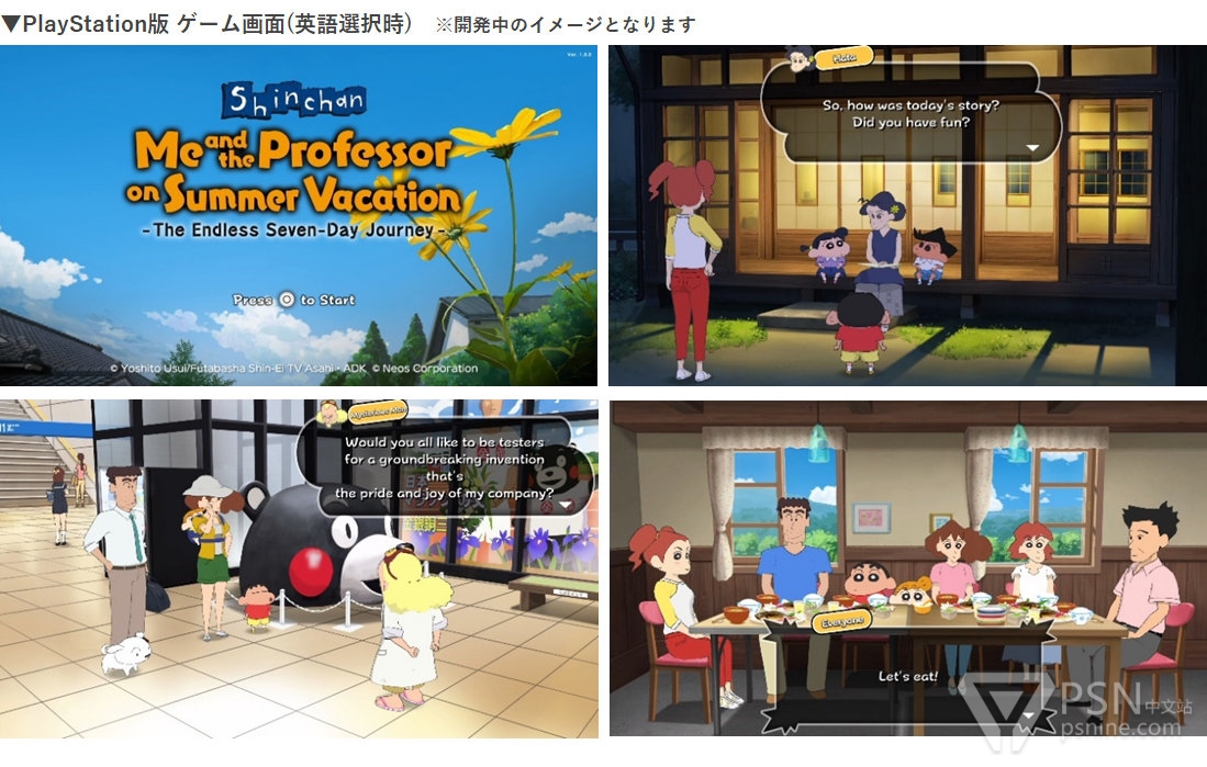 《蜡笔小新 我与博士的暑假 ~ 永不结束的七日之旅》官方宣布将推出PS4版,预计将于8月发售,后续还将发行实体版本,暂无公开中文信息。另外,官方透露Switch版在日本与海外累计出货量已突破40万份。本作由《我的暑假》系列监督「绫部和」参与制作,玩家将和野原一家来到熊本县,和小新一起钓鱼、捕虫,享受为期一周的乡村生活。