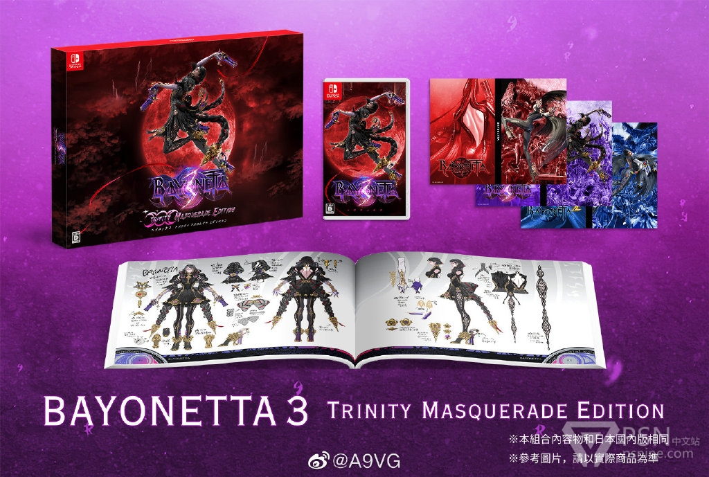 任天堂宣布将推出《猎天使魔女3》(官译:蓓优妮塔)特别版,收录《魔女3》游戏本体、三张可替换封面、特别收纳盒、画集等。支持将系列三款游戏的实体盒并排摆放,三张替换封面可构成一幅完整图。