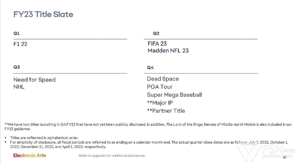 · 《极品飞车》新作将于财年第三季度(10月1日~12月31日)内推出,第四季度会有尚未披露的大型IP作品与合作伙伴的游戏发售
