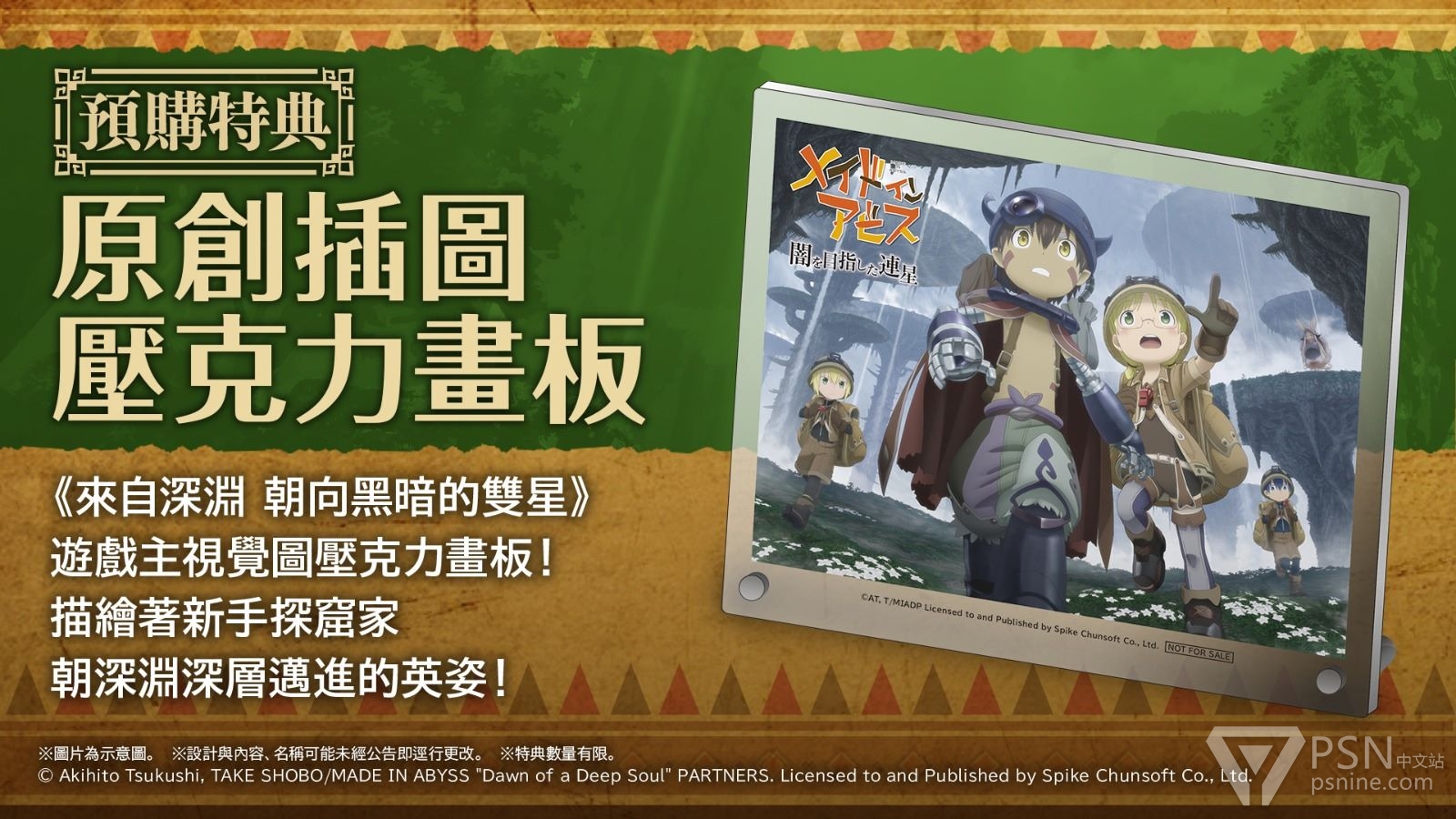 ps4,ns版《来自深渊 朝向黑暗的双星》于9月1日发售,实体初回特典为原创插图亚克力画板,售价428港币。