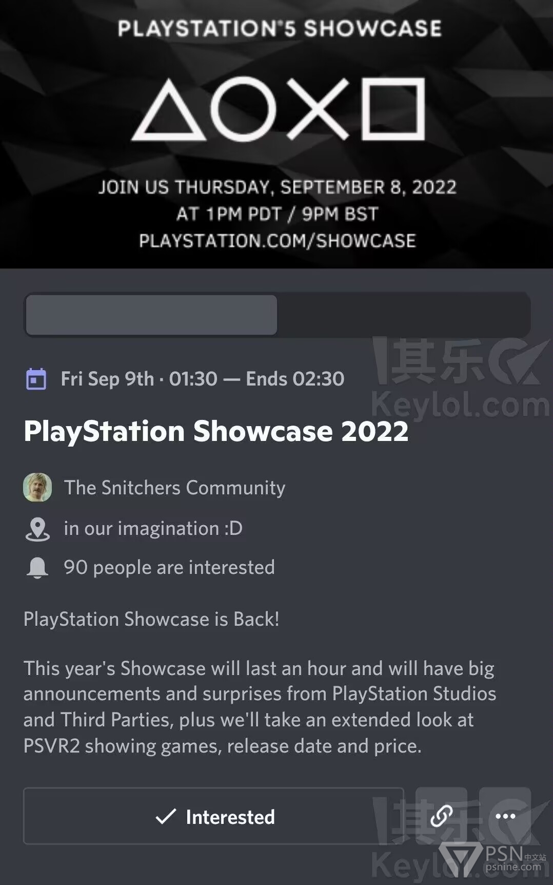知名爆料人“The Snitch"爆料新一期PS直面会“PlayStation Showcase”将于北京时间9月9日凌晨1点半开始,时长约为一个小时,主要介绍第一方和第三方新作,PSVR2的发售日、价格和游戏阵容。