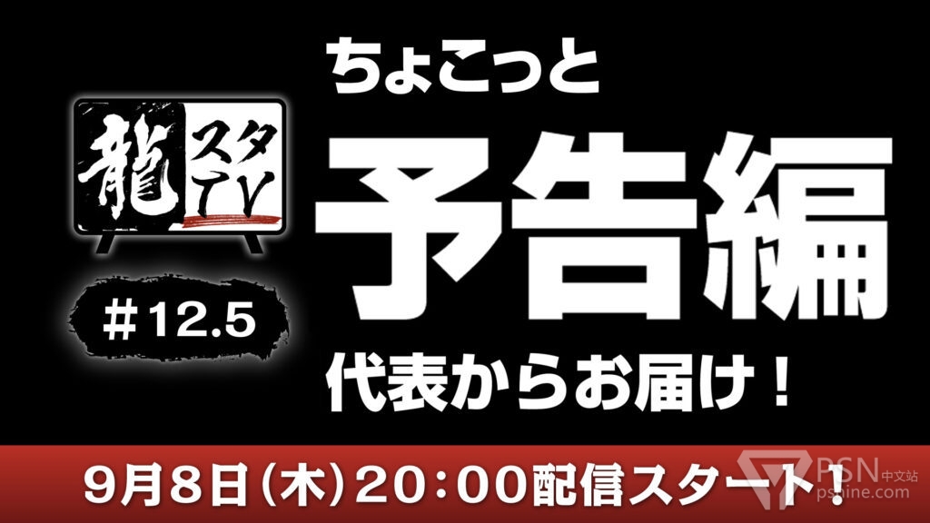 如龙工作室会在9月8日19点办一场小型节目「ちょこっと予告編!代表からお届けショートver.」,横山昌义和山藤雅也会参加,届时或许会有《如龙8》抢先预览版的预告片。