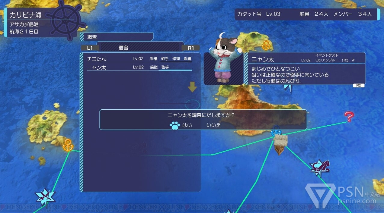 本作中有3位能力各异的女主角,玩家从中挑选一位自行操作,展开航海冒险与海洋战斗,帮助你的船员们都是可爱的猫猫。