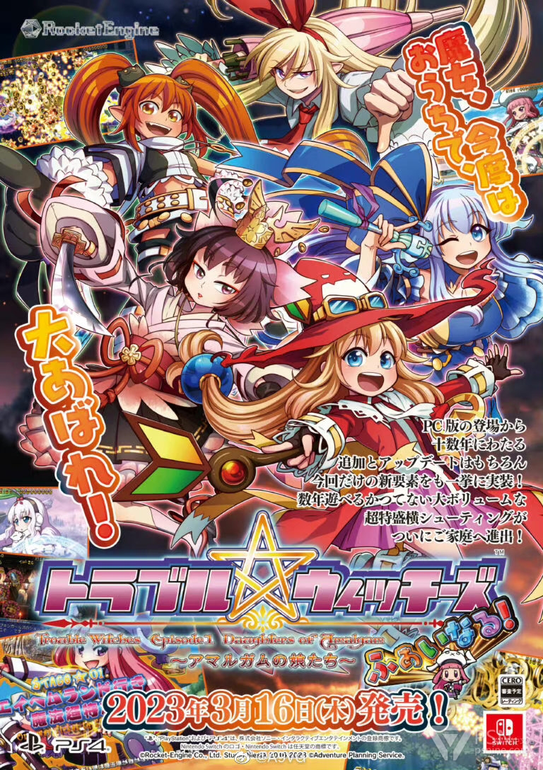 2D横向卷轴类型射击游戏《问题小魔女 最终版! ~EP1 汞合金的少女们~》(官译是麻烦小魔女)宣布将于2023年3月16日发售于PS4、NS平台。本作收录了之前系列的所有游戏模式,并追加了两名新的魔女以及新魔法卡。TGS 2022期间将会在Konami摊位中开放实机试玩。
