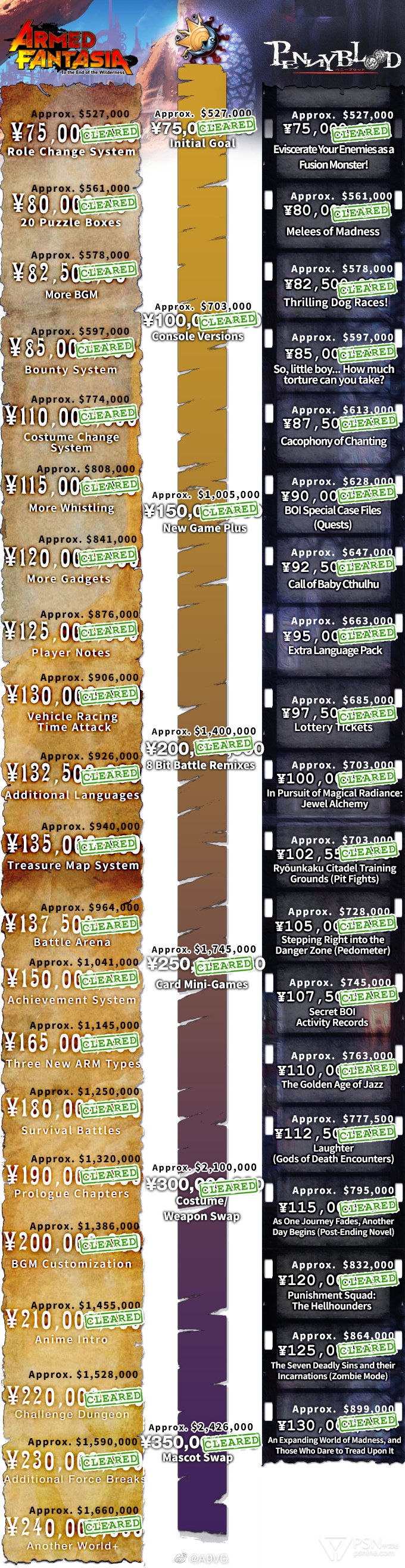 【《武装幻想》&《细血》众筹成功】《武装幻想》(ARMED FANTASIA)与《细血》(Penny Blood)分别是《荒野兵器》与《影之心》系列的开发者们制作的全新作品,于8月30日开始进行联合众筹活动。本次众筹活动已经正式解释,一共有17920名赞助者支援了约1863万人民币,是目标金额的四倍,也是过去两年游戏类众筹中获得金额最高的项目,在Kickstarter史上第13名。