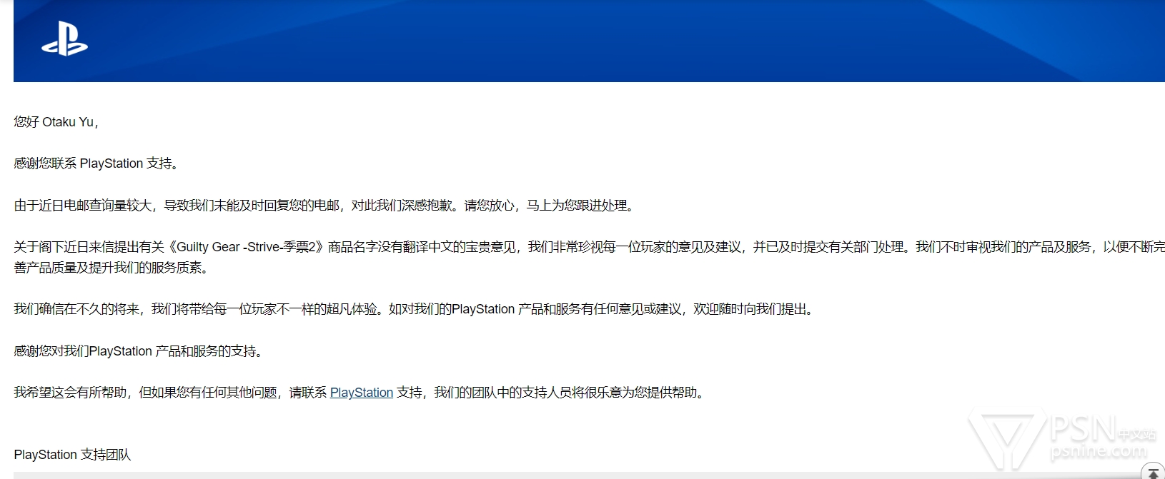 我9月初通过反馈地址向PS HK反馈商品名称日语这一问题(有个DLC完全看不懂是个啥),收到如图所示的邮件,9月底,PS的商品界面才正常。商品介绍文字和商品名称这才是中文。