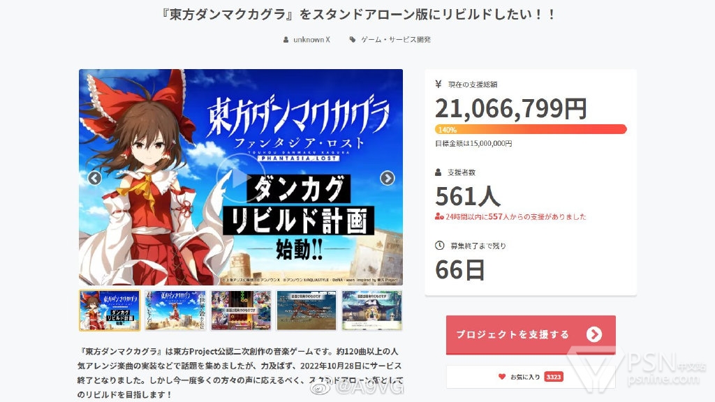 东方Project官方授权音乐节奏游戏《东方弹幕神乐 迷失幻想曲》为制作独立版(Steam)实施的众筹活动正式开启后,只用时约30分就达成了目标金额的1500万日元,此外游戏Switch版也制作决定。