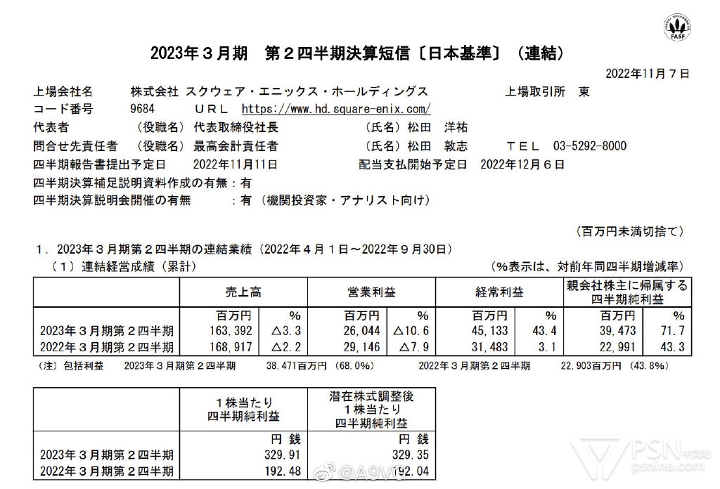 减收减益的主要原因是主力业务的家用游戏与手机游戏表现均不佳,只是在美元兑换日元汇率的影响之下,经常利润与最终利润大幅增长,此外出售海外工作室与部分IP还产生了94.55亿日元的收益。