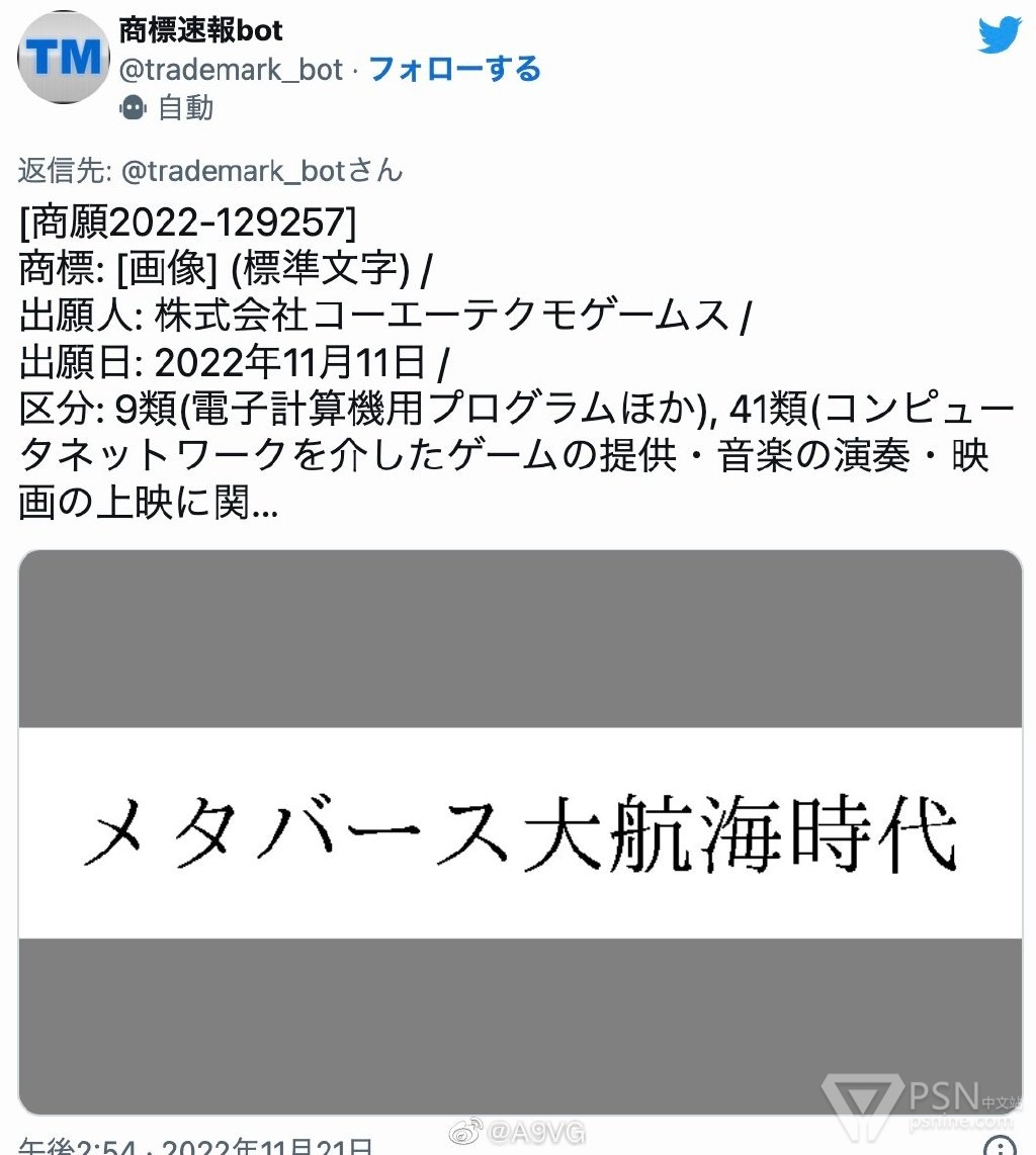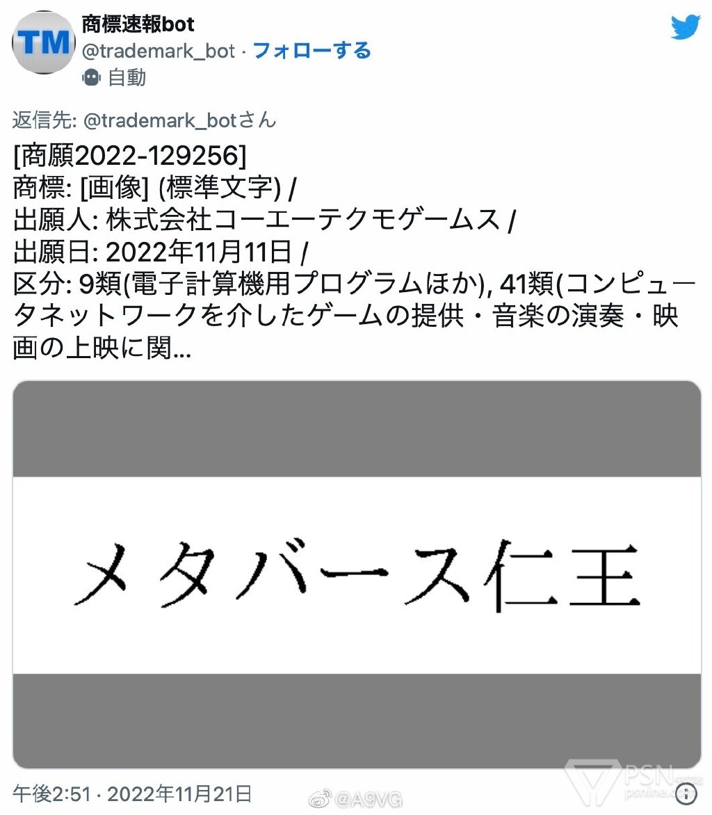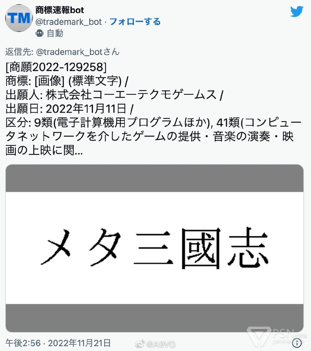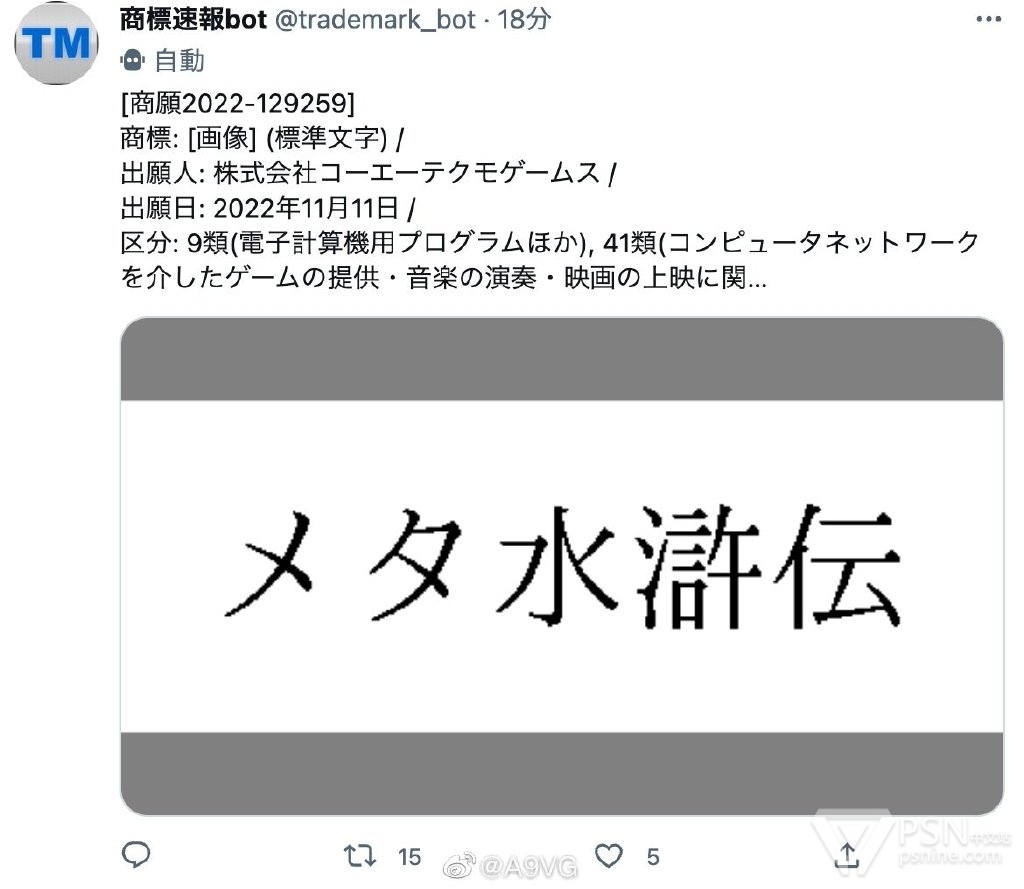 光荣特库摩在日本申请注册了数个新商标,包括: