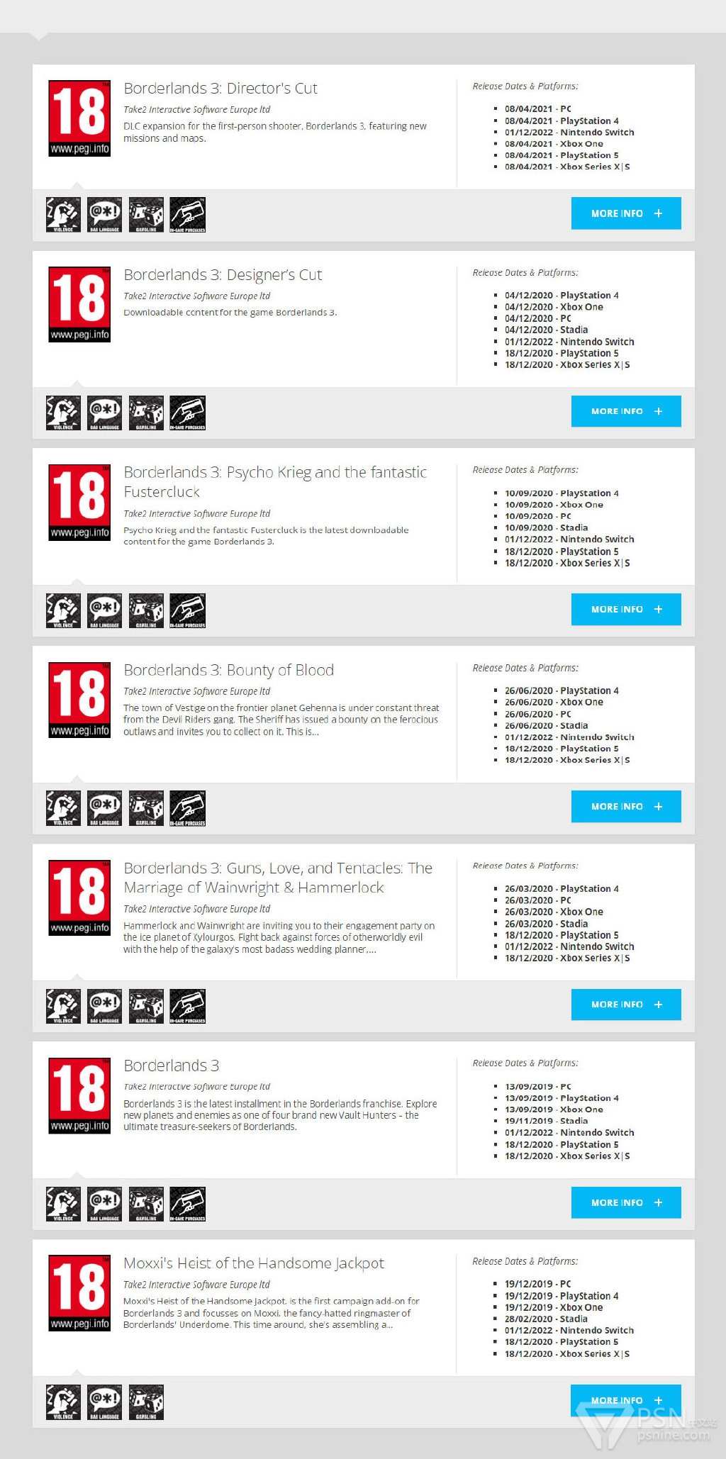 《无主之地3》Switch版现已在欧洲过审,游戏各种版本与DLC均有获得分级。