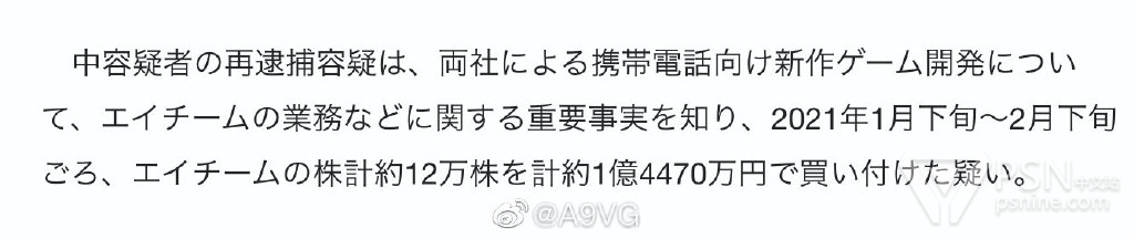 这次是中裕司事前得知SE与Ateam公司合作开发新手游(《最终幻想7 第一战士》)的消息后,便于2021年1月下旬~2月下旬,购买了价值约1亿4470万日元Ateam公司的股票。上次遭到逮捕是因为提前得知消息后,买了价值280万日元Aiming公司的股票。