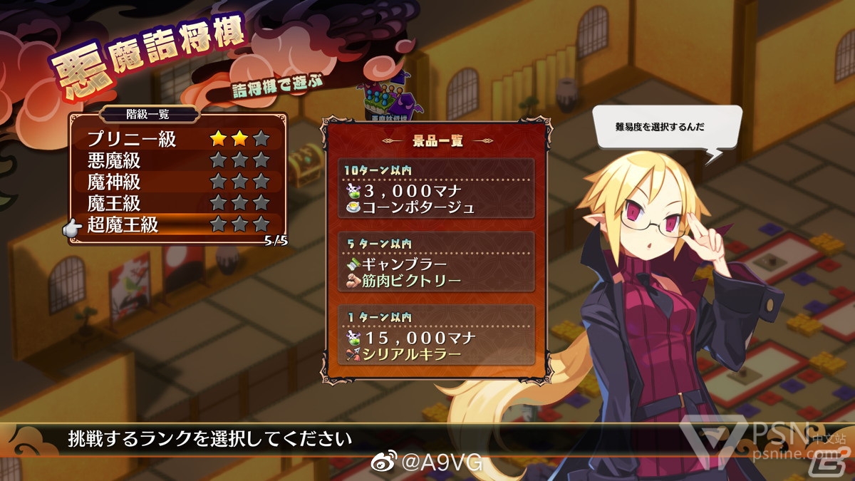 “将死恶魔将棋”是利用战斗AI来游玩的迷你游戏,玩家编辑配置于地图棋盘上的我方角色后,争取以尽可能少的回合数赢得比赛。通关后,会根据所消耗的回合数派发奖品。